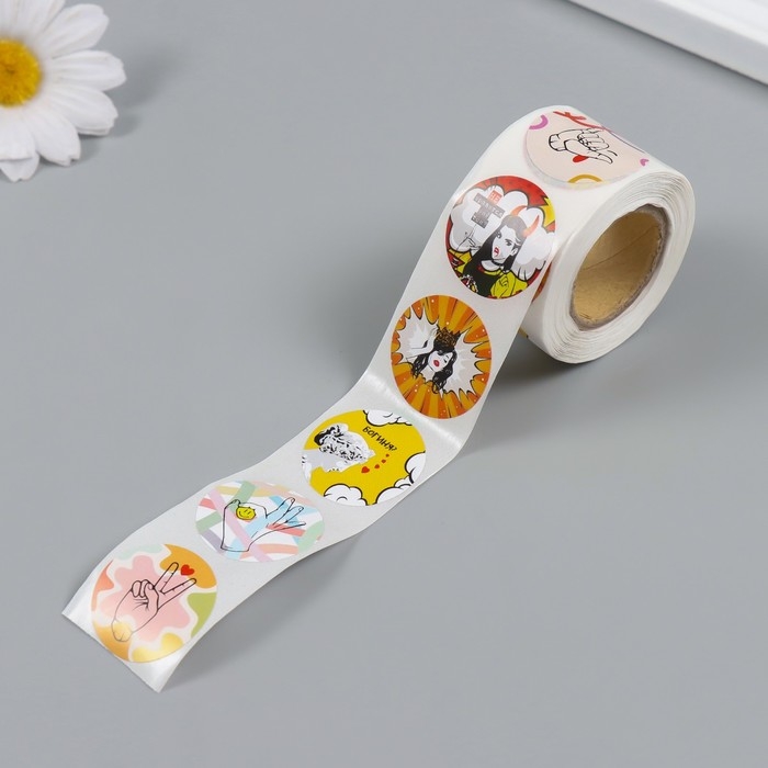 Наклейка бумага "В тренде" d=2,5 см 252 шт в рулоне