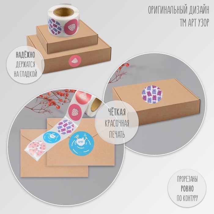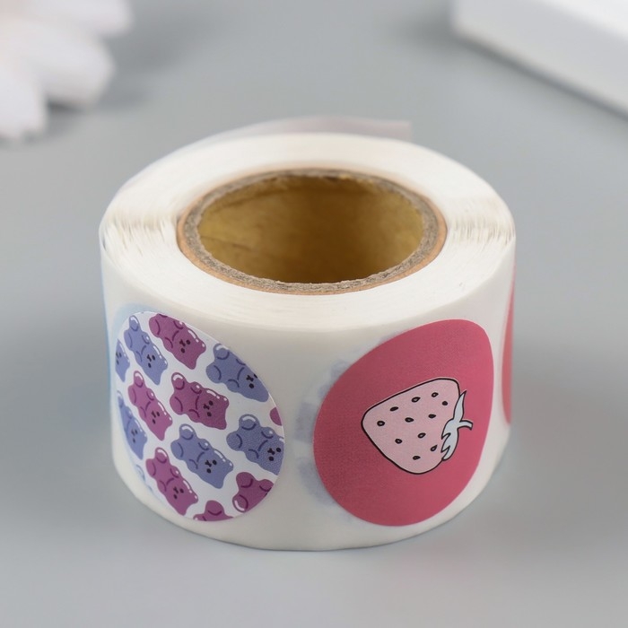 Наклейка бумага "Мимишности" d=2,5 см 252 шт в рулоне