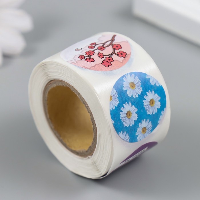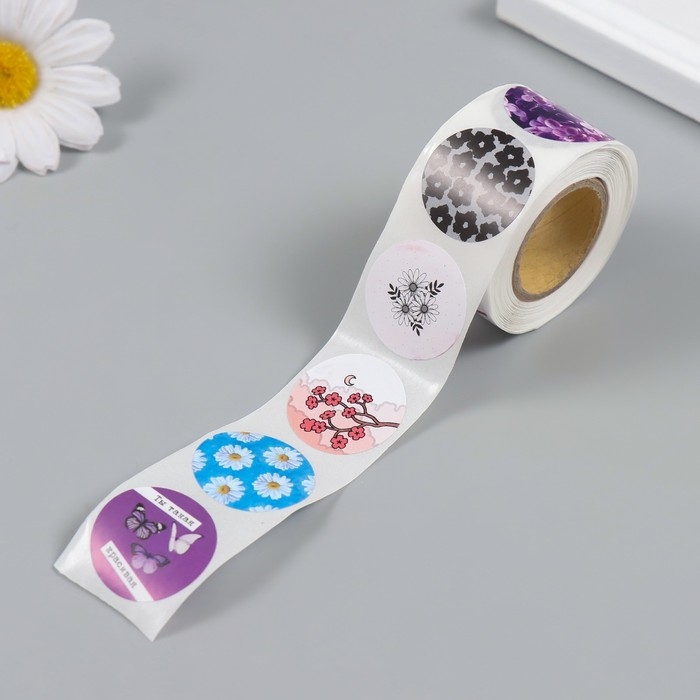 Наклейка бумага "Ромашка" d=2,5 см 252 шт в рулоне
