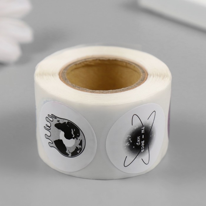 Наклейка бумага "Ты - весь мир" d=2,5 см 252 шт в рулоне