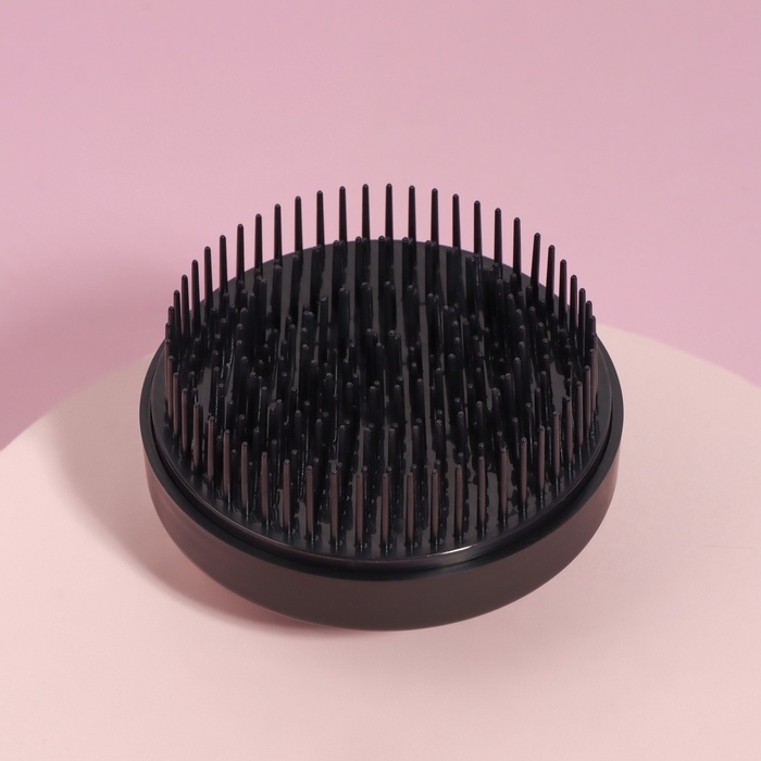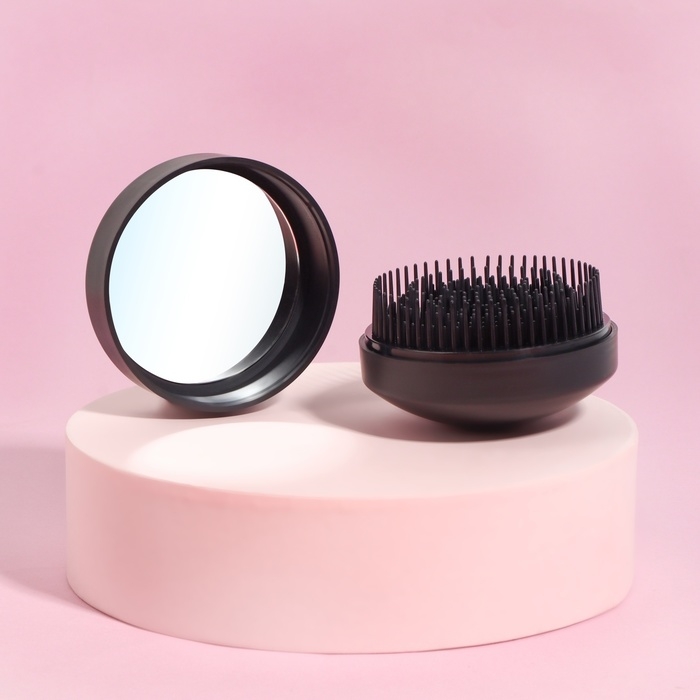 Расчёска массажная, круглая, складная, с зеркалом, d = 7,5 см, цвет чёрный