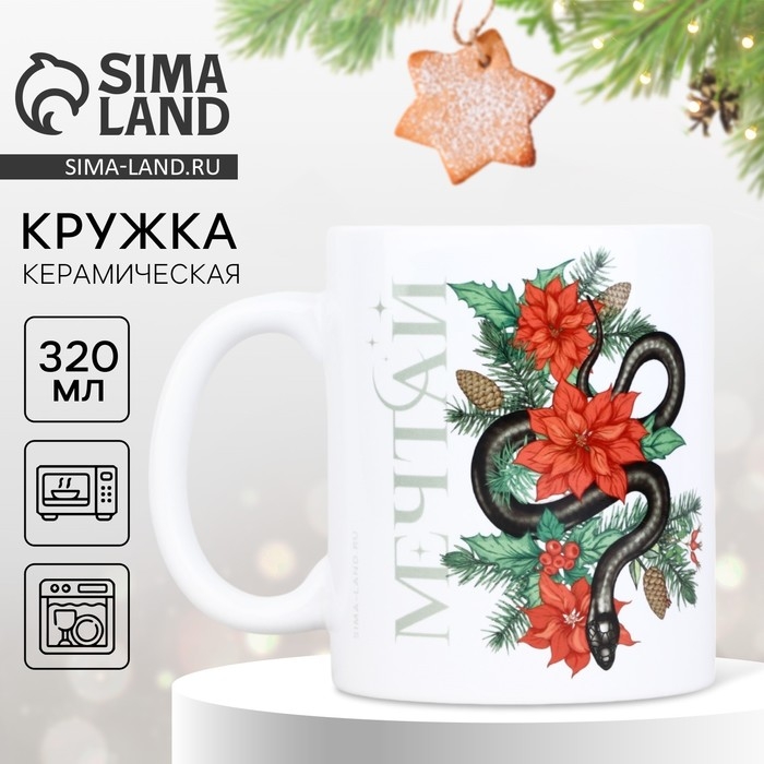 Новый год. Кружка белая керамическая «Мечтай», 320 мл