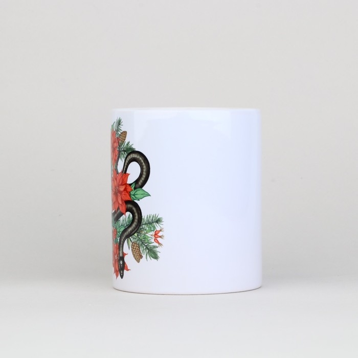 Дизайн кружки выполнен в белом цвете с красочным рисунком символа 2025 года. Такой дизайн в ярком стиле отлично подойдет в качестве подарка, а также добавит веселья любому столу.