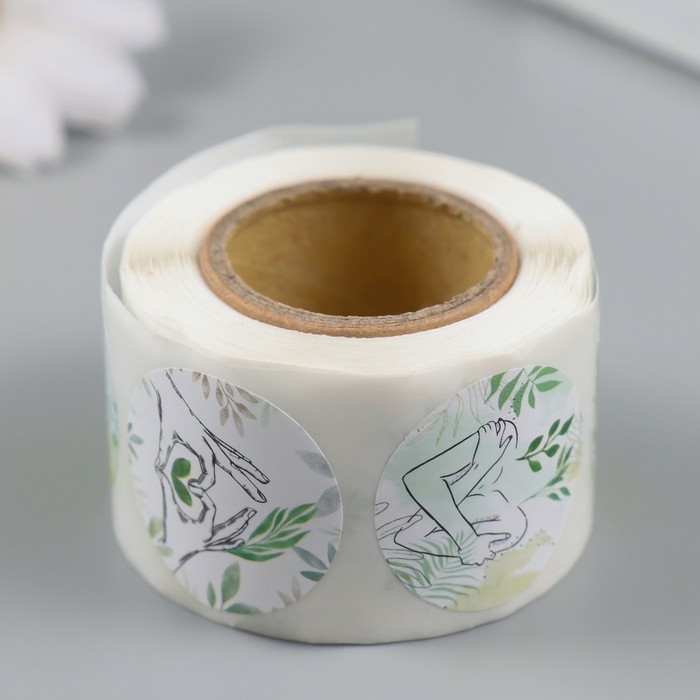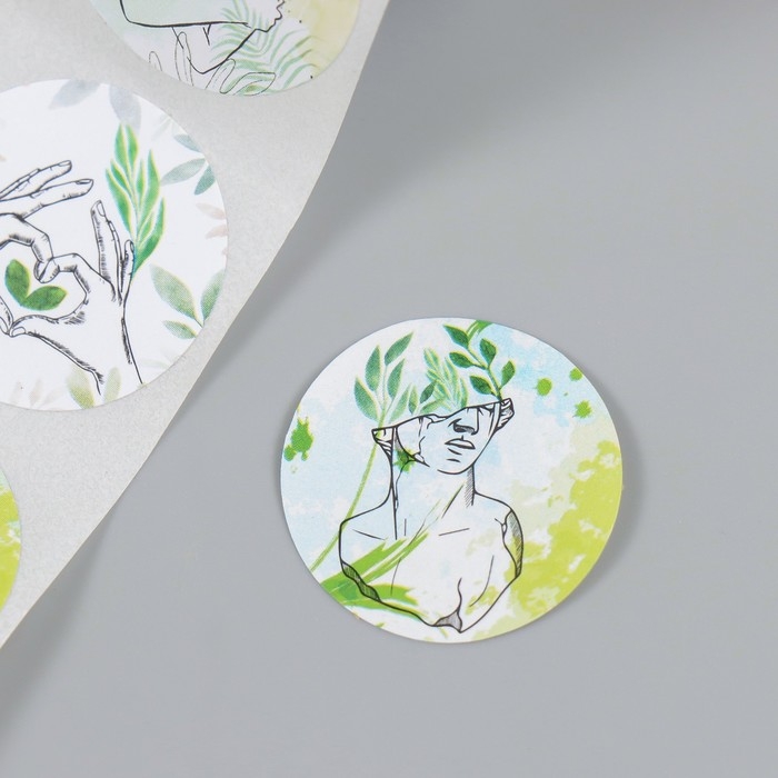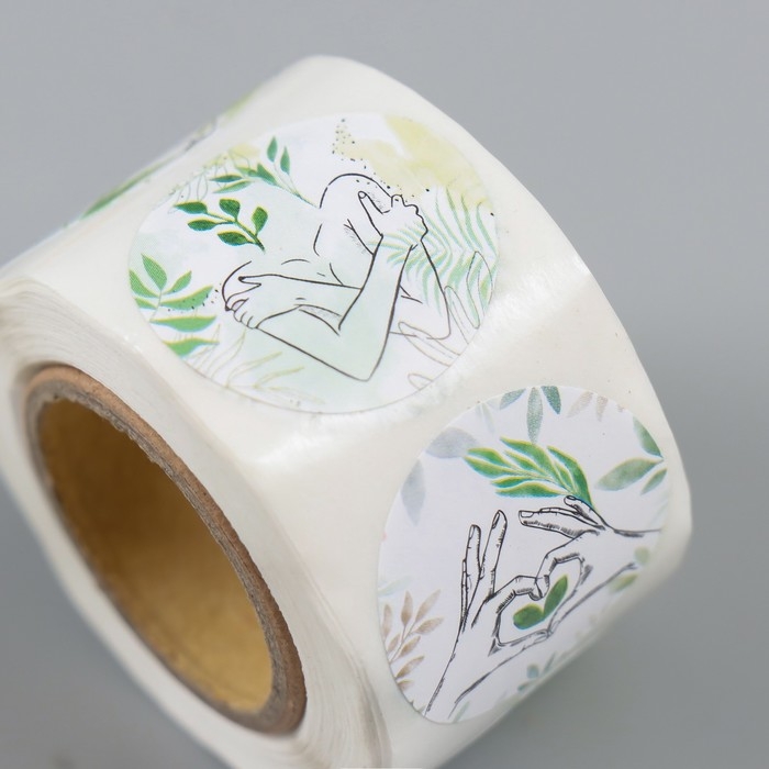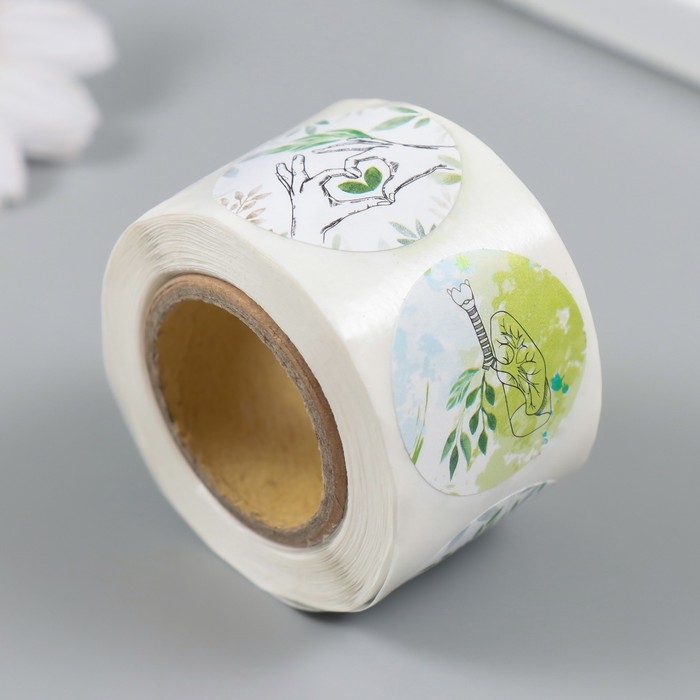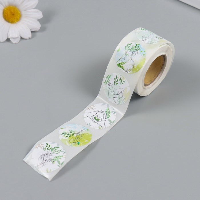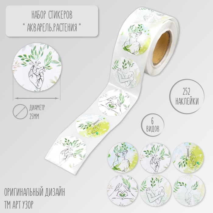Наклейка бумага "Акварель. Растения" d=2,5 см 252 шт в рулоне