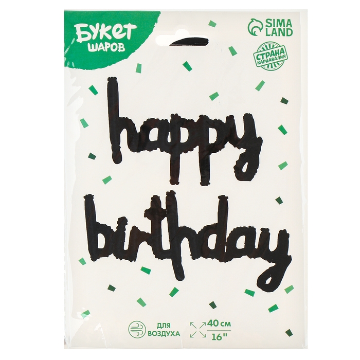 Надпись фольгированных шаров 6" «С днём рождения», цвет чёрный