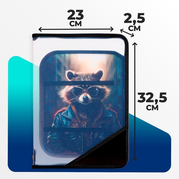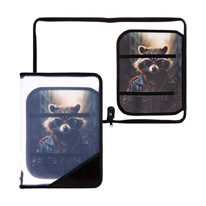 Папка для труда А4, 325 х 230 х 25 мм, молния вокруг, откидная планка, пластиковая, ПТР-1, Calligrata "Енот"