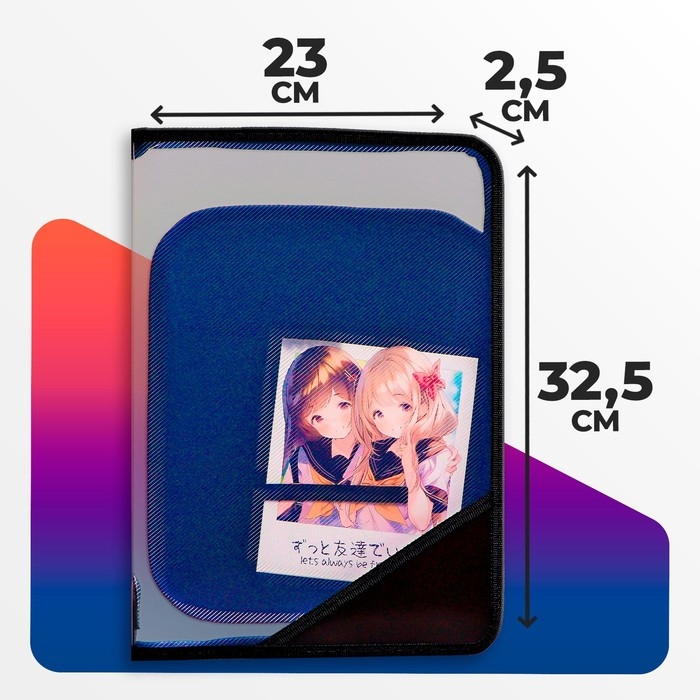 Папка для труда А4, 325 х 230 х 25 мм, молния вокруг, откидная планка, пластиковая, ПТР-1, Calligrata "Аниме снимок"