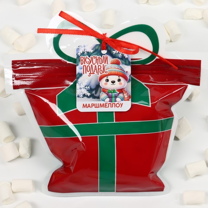 Новый год! Маршмеллоу в пакете с шильдиком «Вкусный подарок», со вкусом пломбира, 40 г
