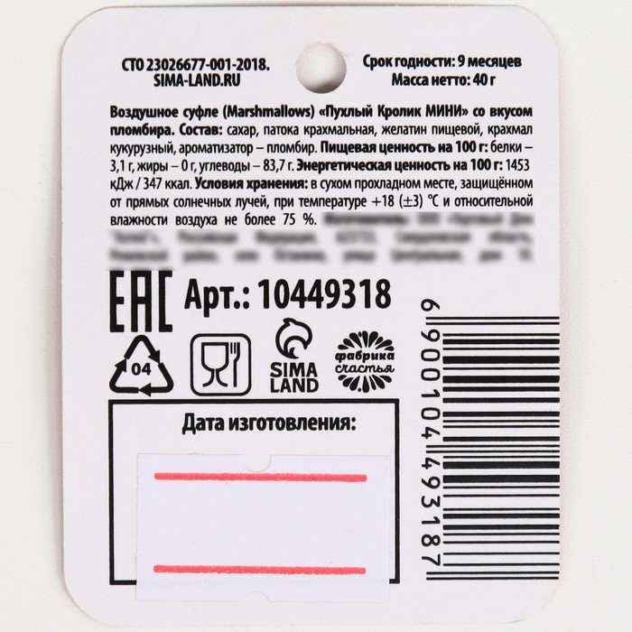 Состав: сахар, патока крахмальная, желатин пищевой, крахмал кукурузный, ароматизатор – пломбир.