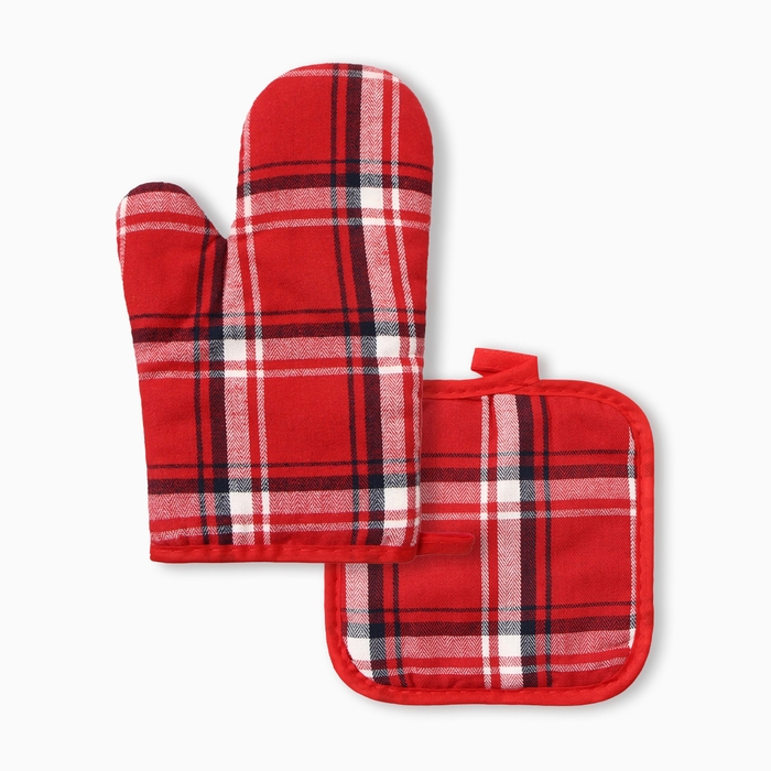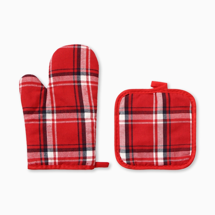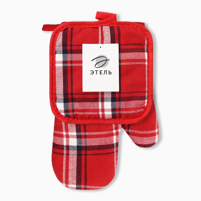Новый год. Кухонный набор 2 пр. Этель Клетка цв.красный прих.17*17см, варежка-прихв. 26*16см,100%п/э