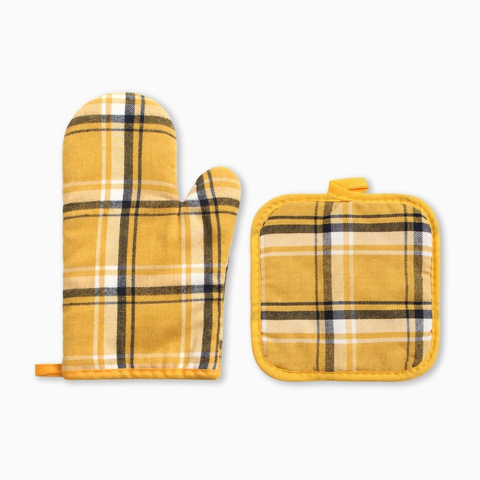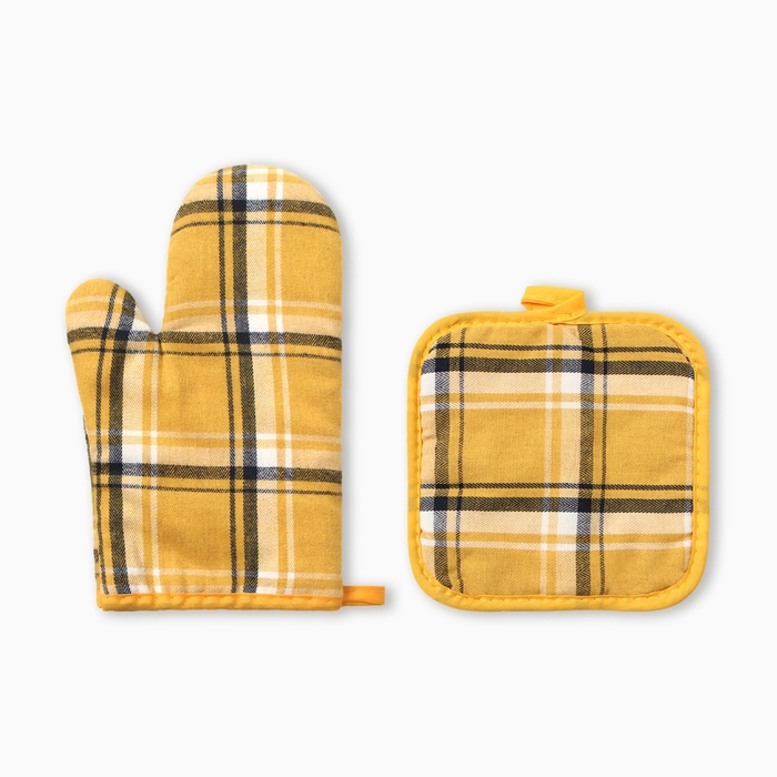 Кух.набор 2 пр. Этель Клетка цв.желтый прих.17*17см, варежка-прихв. 26*16см,100%п/э