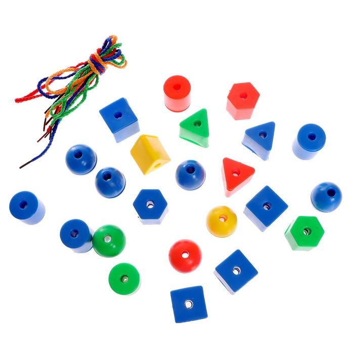 Шнуровка в банке «Весёлые бусинки», 60 шт., по методике Монтессори