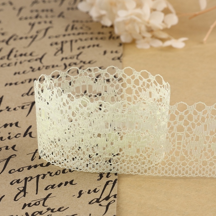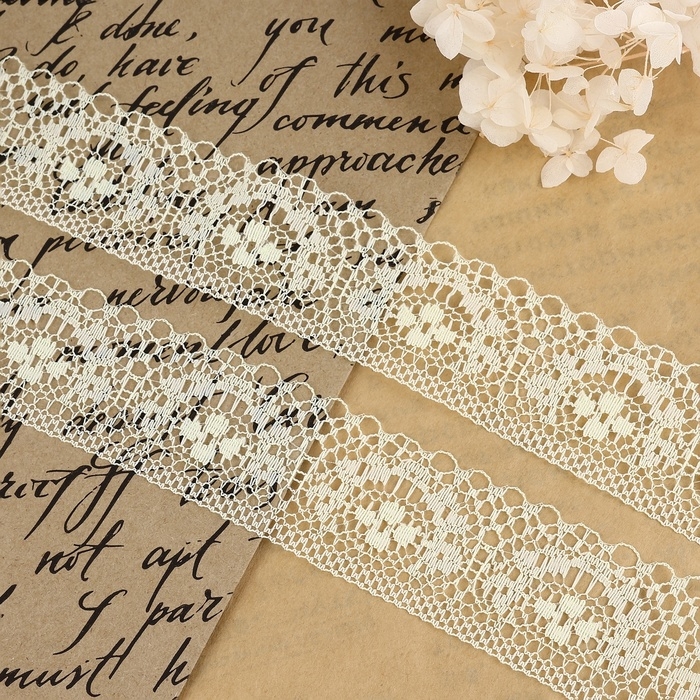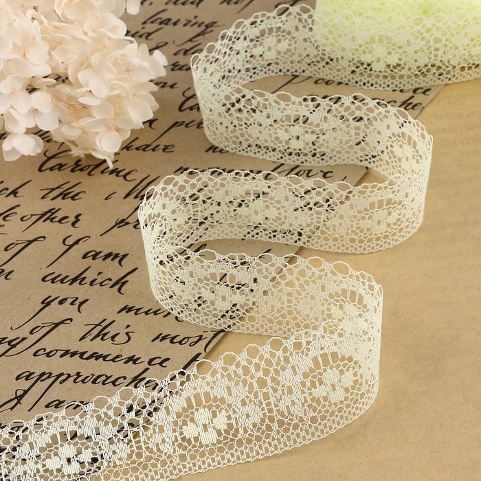 Кружево капроновое, 40 мм × 10 ± 1 м, цвет ванильный