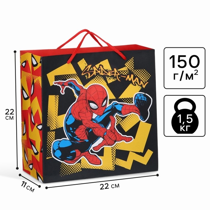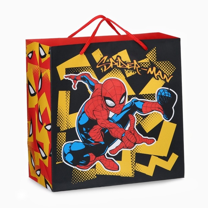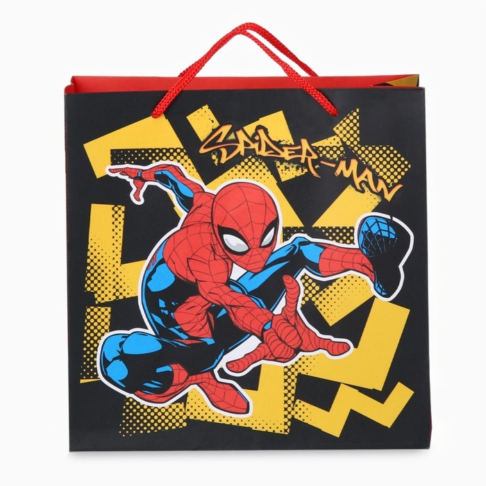 Пакет подарочный крафт 22х22х11 см, Человек-паук