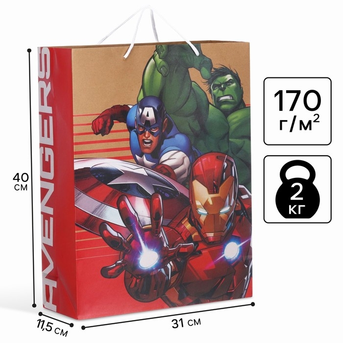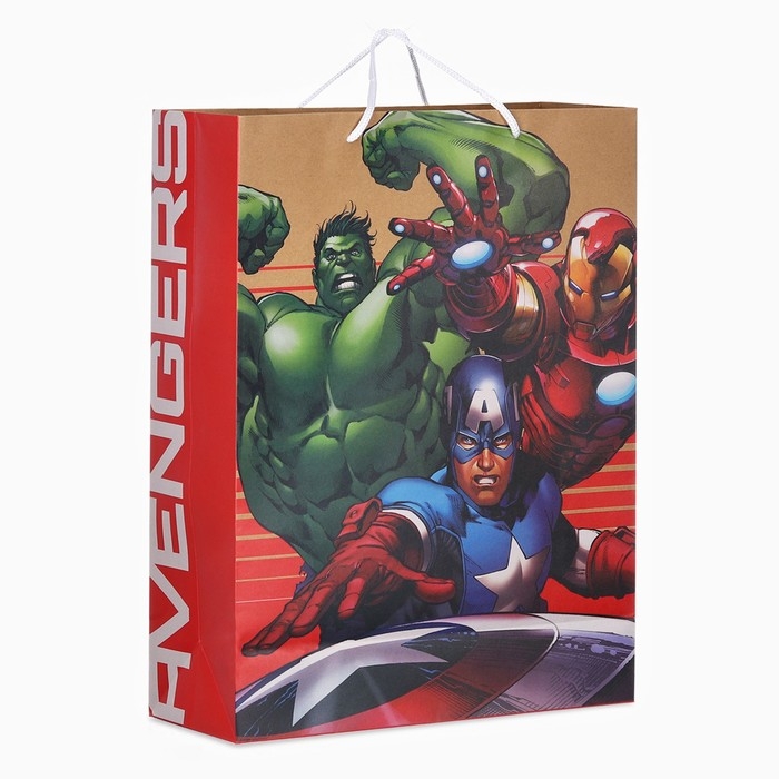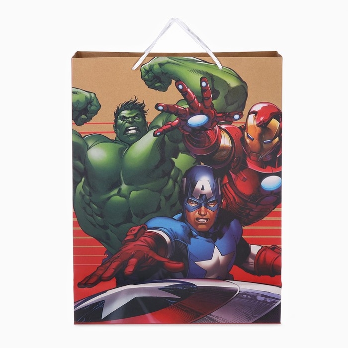 Пакет подарочный крафт, 40х31х11.5 см, Мстители