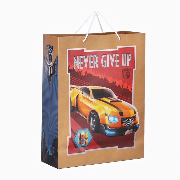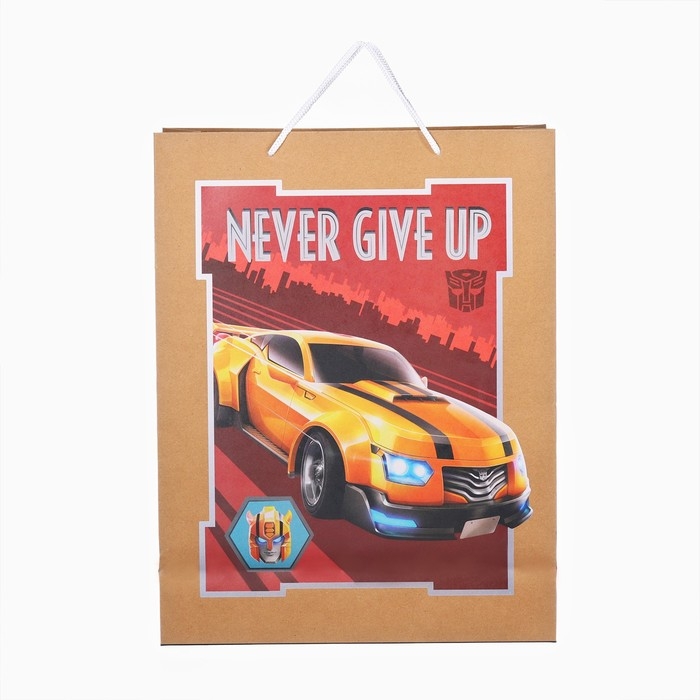 Пакет подарочный крафт "Happy Birthday" 40х31х11.5 см, Трансформеры