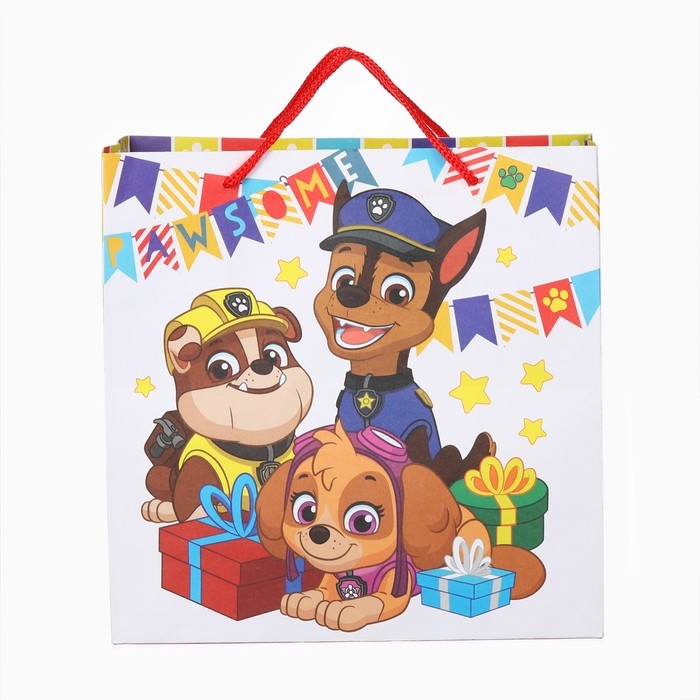 Пакет подарочный крафт "С Днем Рождения" 22х22х11 см, Щенячий патруль