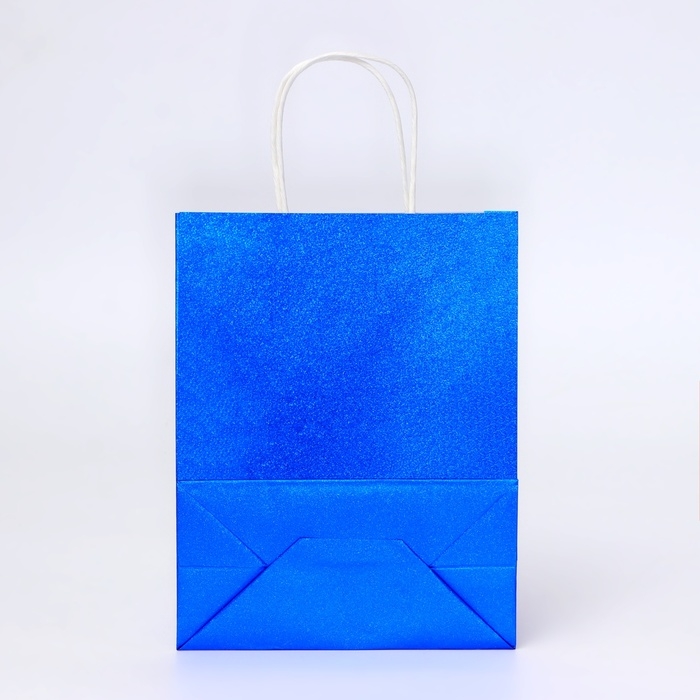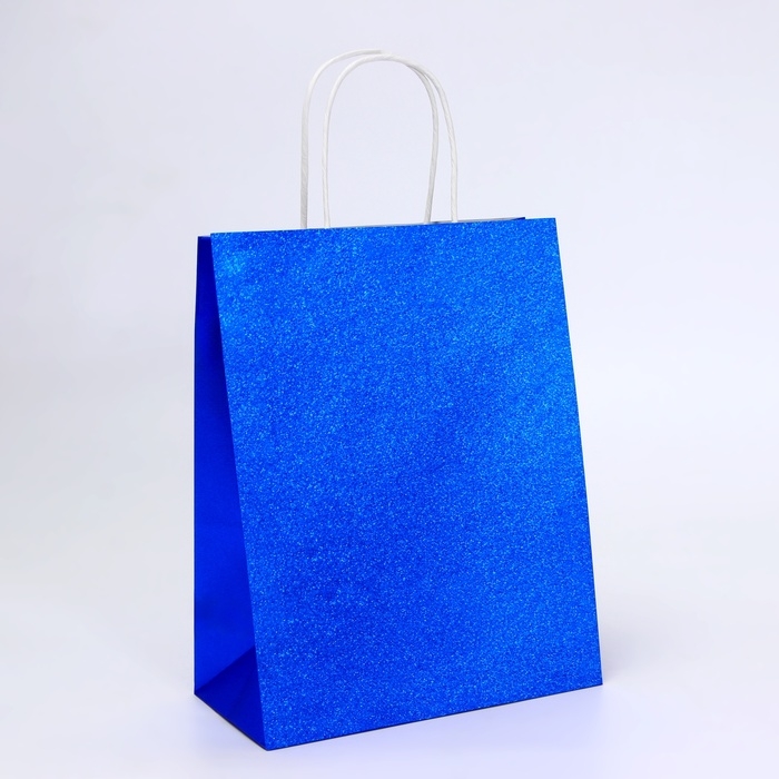 Пакет подарочный бумажный с глиттером синий, 21 х 11 х 27 см