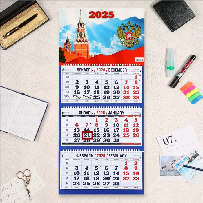 Календарь квартальный, трио "Госсимвол - 2" 2025, 69 х 31 см