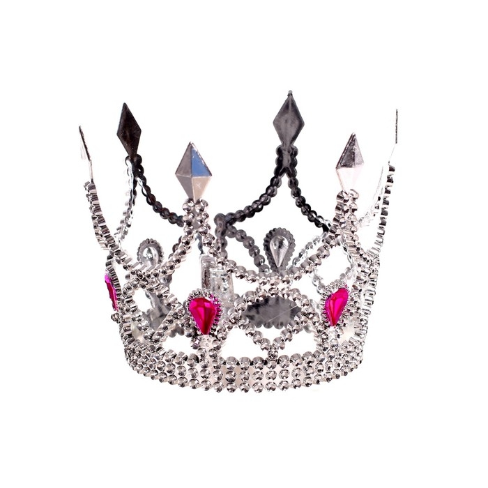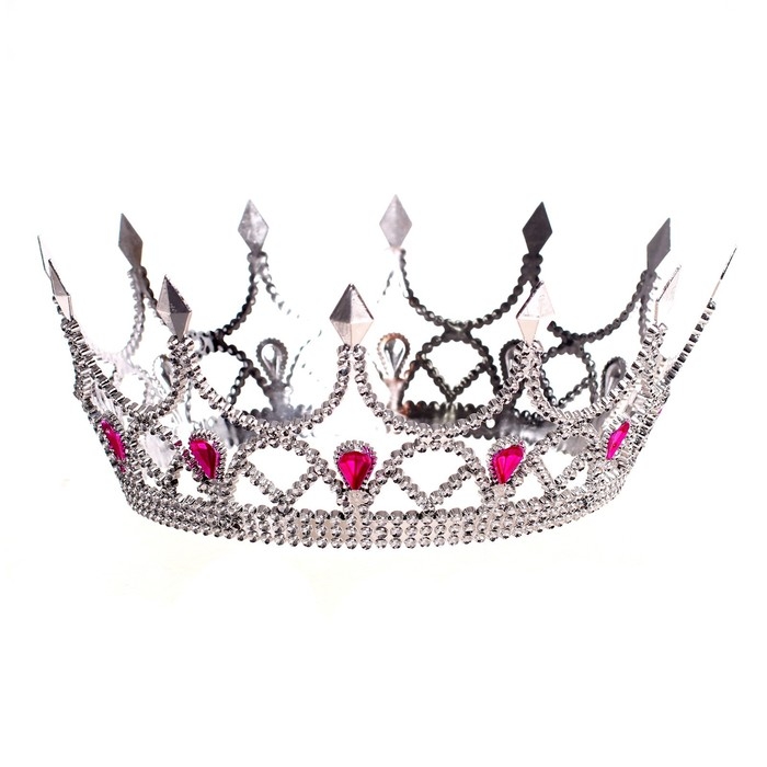 Изысканный венец королевы, выполненный в благородном серебристом цвете, станет великолепным дополнением к вашему образу. Головной убор украшен сверкающими розовыми стразами, он придаёт образу королевскую роскошь и нежность.