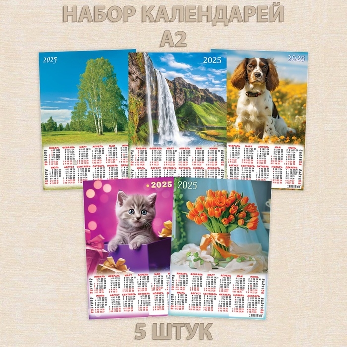 Набор листовых календарей А2 "Природа и животные" 2025 год, 42 х 60 см, 5 штук