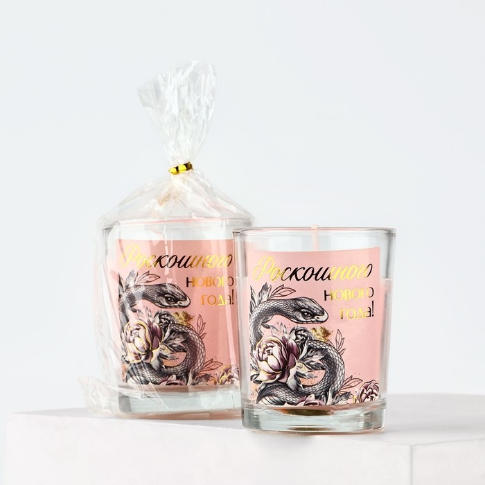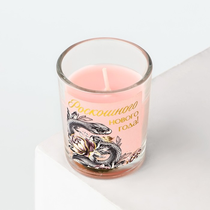 Новогодняя свеча с наклейкой «Новый год: Роскошного года», аромат карамель,5х6х5 см