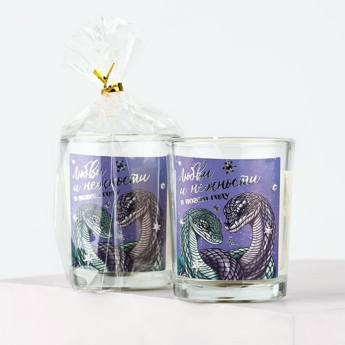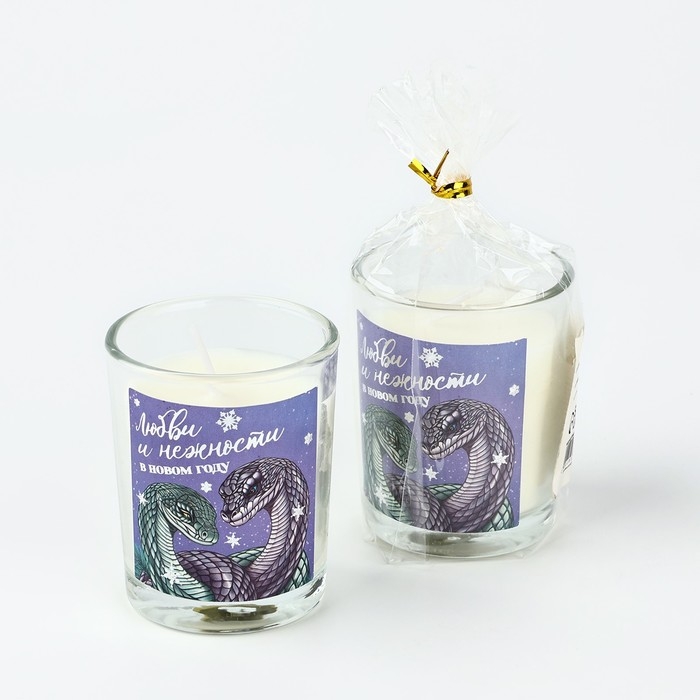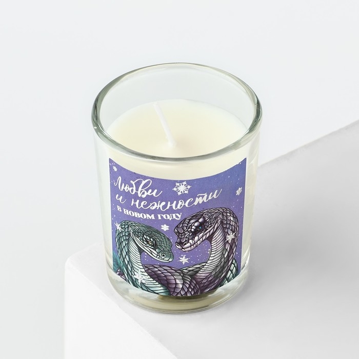 Новогодняя свеча с наклейкой «Новый год: Любви», аромат еловые ветки,5х6х5 см