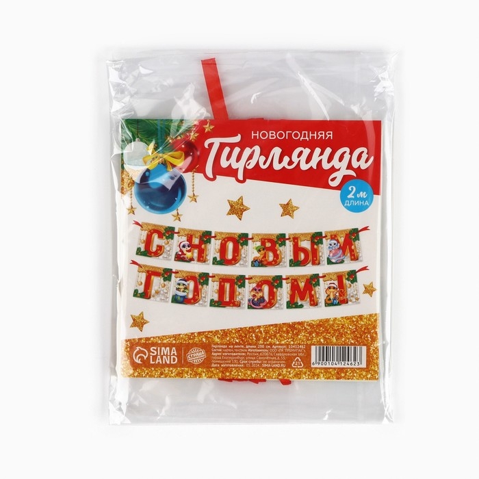 Новый год 2025! Гирлянда на ленте «Новогодняя коллекция: С новым годом», змейка, дл. 200 см