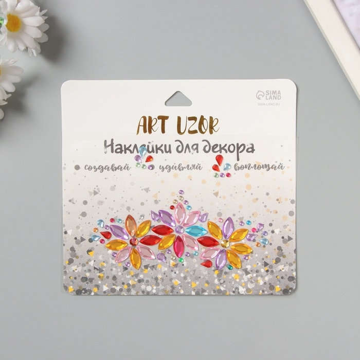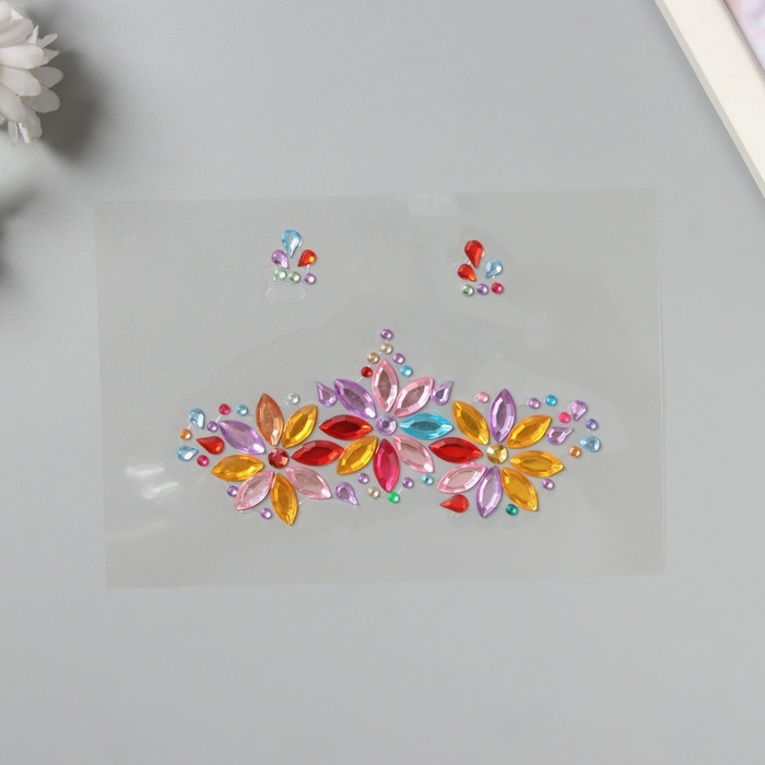 Наклейка пластик стразы на лицо "Три цветка" разноцветная 14,5х16 см