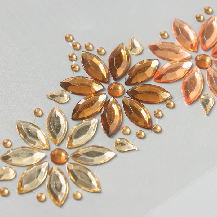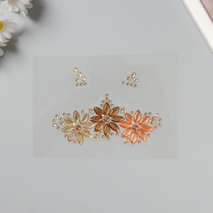 Наклейка пластик стразы на лицо "Три цветка" золото 14,5х16 см