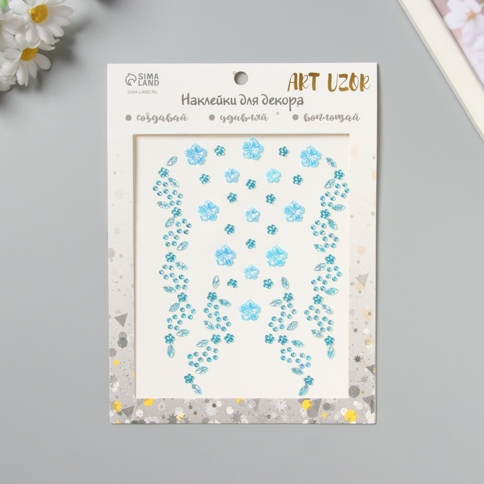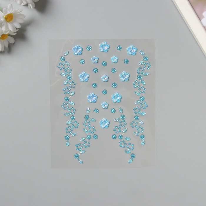 Наклейка пластик стразы на волосы "Нежные голубые цветы" 21х15,5 см