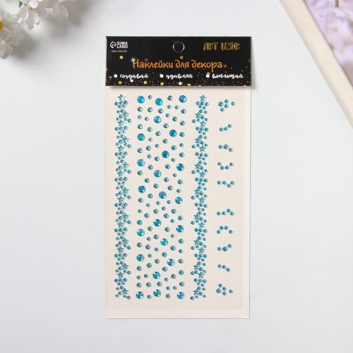Наклейка пластик стразы "Звёздная дорога" голубая 22,5х11,5 см