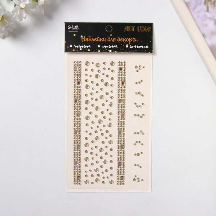 Наклейка пластик стразы "Квадратная дорога" золото 22,5х11,5 см