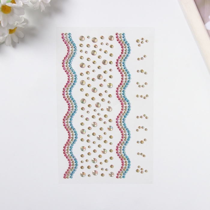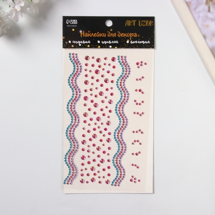 Наклейка пластик стразы "Река" розовая22,5х11,5 см