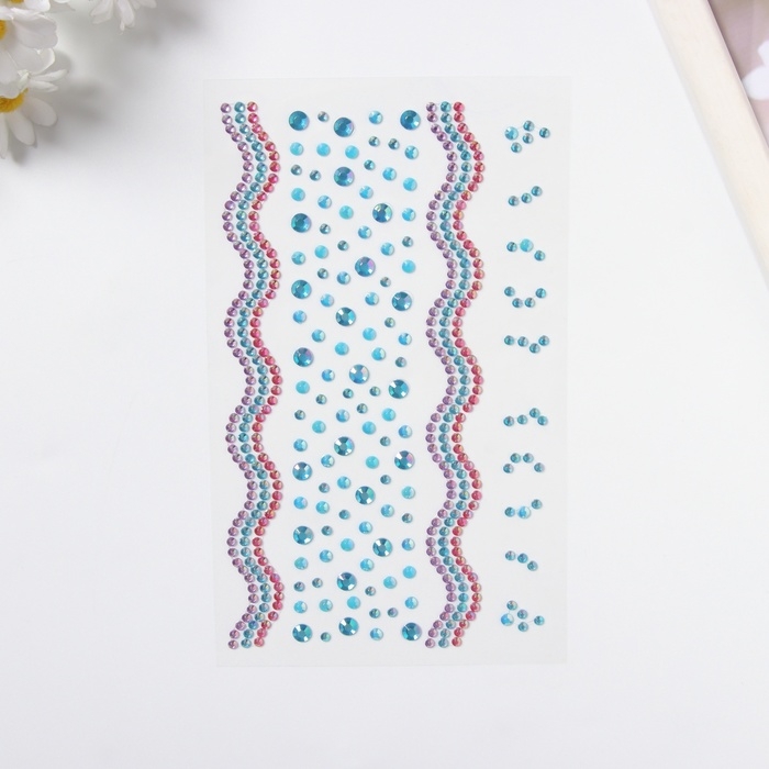 Наклейка пластик стразы "Река" голубая 22,5х11,5 см