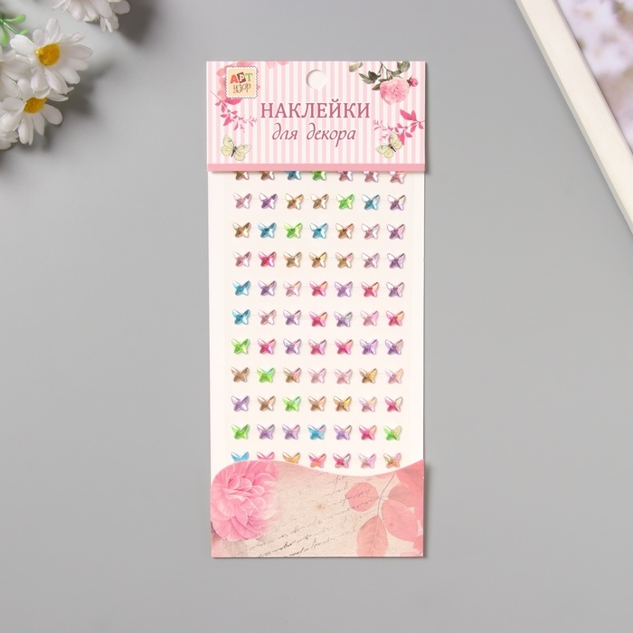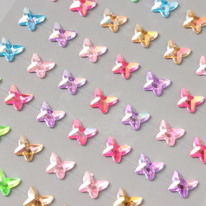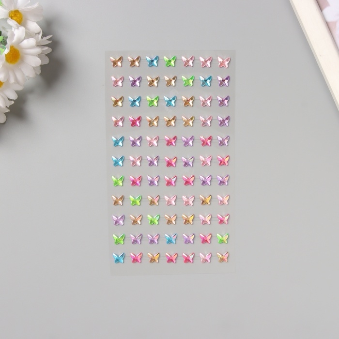 Наклейка пластик стразы "Бабочки" цветная 15х9 см