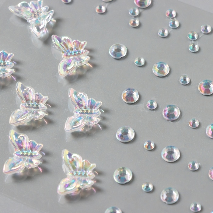 Наклейка пластик стразы "Полёт бабочки" белая 11х7,8 см