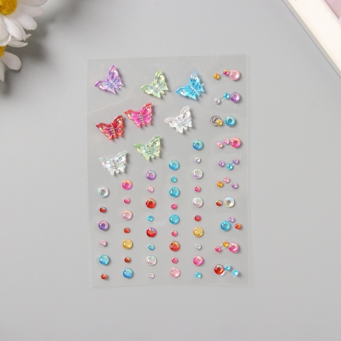 Наклейка пластик стразы "Полёт бабочки" цветная 11х7,8 см МИКС