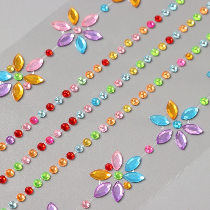 Наклейка пластик стразы тату на тело "Цветочная аппликация" цветная набор 2 листа 18х8 см