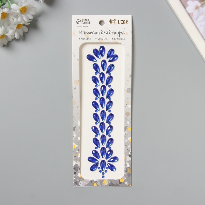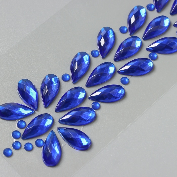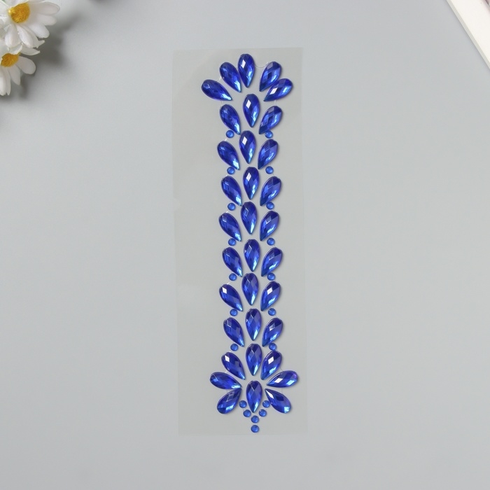 Наклейка пластик стразы "Фонтан" синяя 25х8,5 см