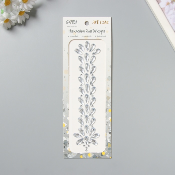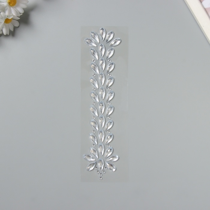Наклейка пластик стразы "Фонтан" зеркальное серебро 25х8,5 см