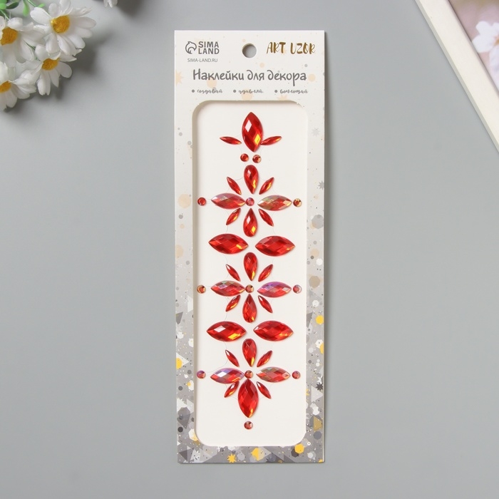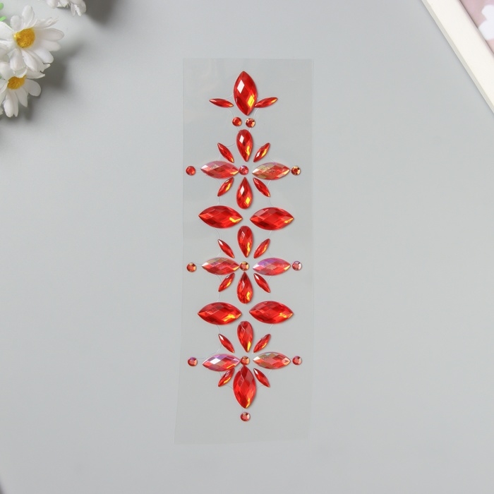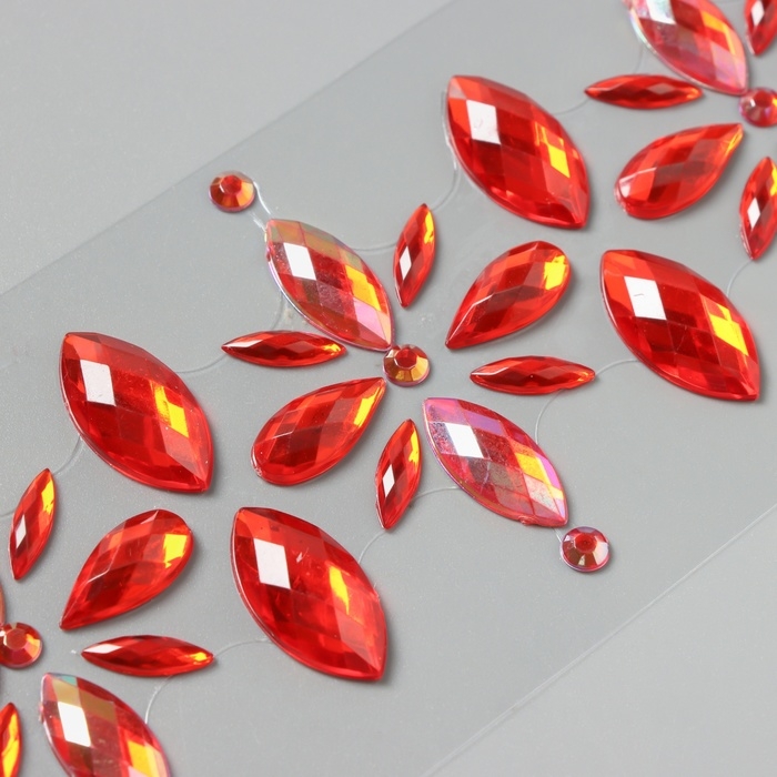 Наклейка пластик стразы "Цветы" красная 25х8,5 см
