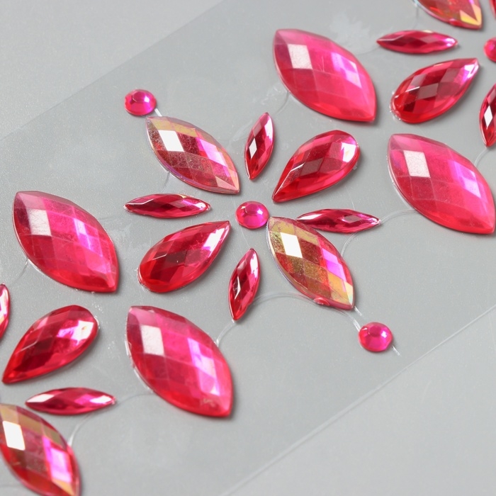 Наклейка пластик стразы "Цветы" малиновая 25х8,5 см