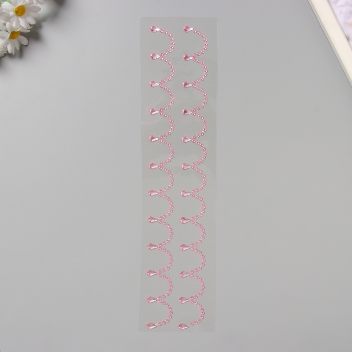 Наклейка пластик стразы "Подвесы" розовая 35х8 см