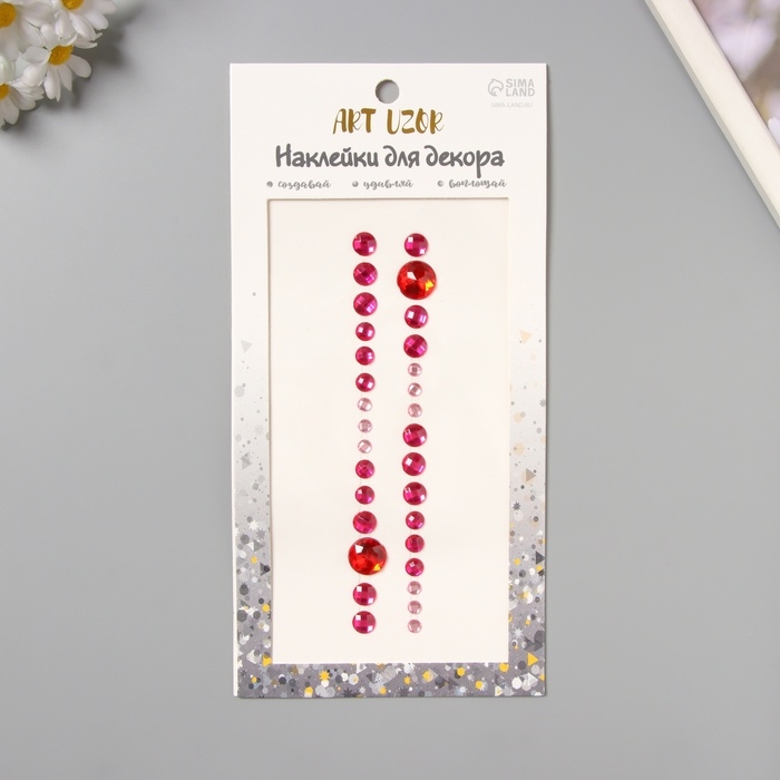 Наклейка пластик стразы на волосы "Круги" малиновая 25х13 см