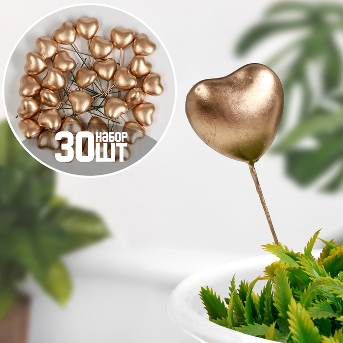 Штекер "Сердечко" золотистое, 3х1,5х2см / набор 30шт