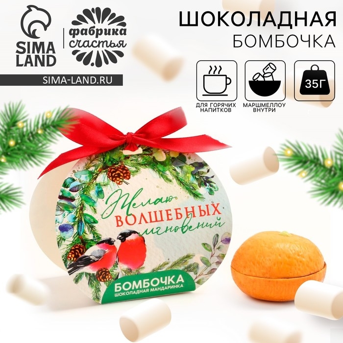 Новый год! Шоколадная бомбочка, белый шоколад, с маршмеллоу «Волшебных мгновений», 35 г