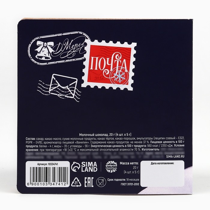 Новый год! Шоколад молочный «Праздничная почта», 5 гр х 4 шт