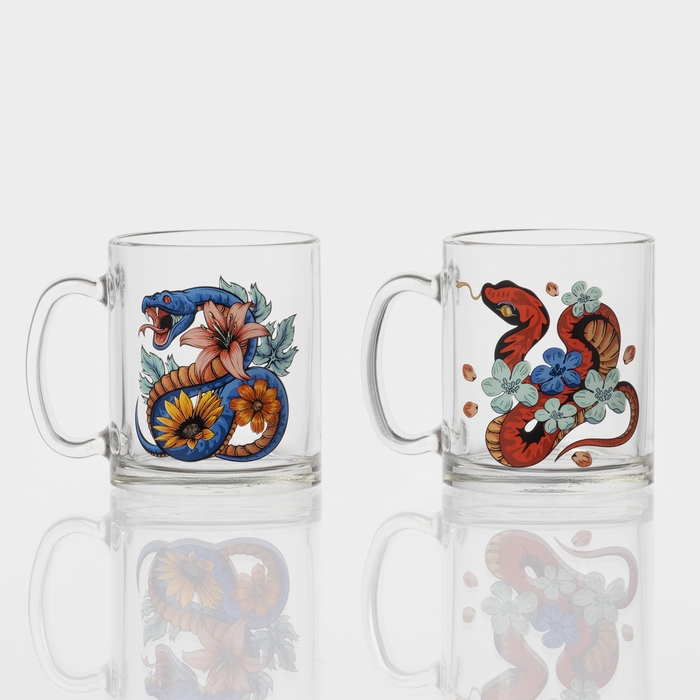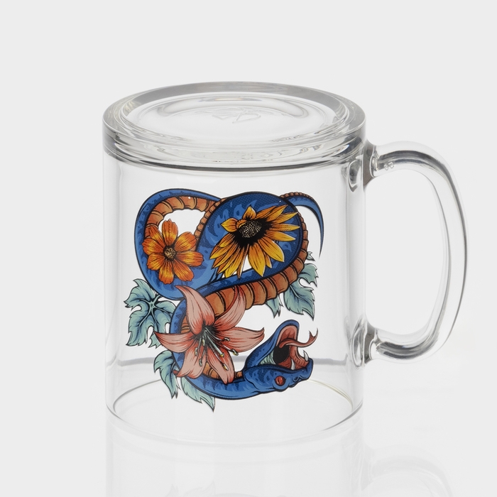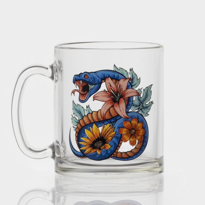 Кружка стеклянная чайная «Цветы и змеи», 320 мл, МИКС