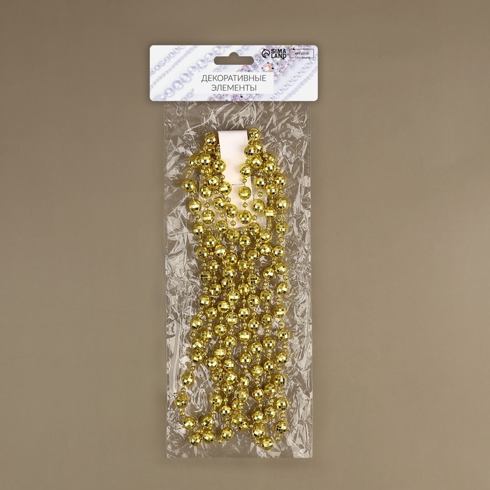 Бусы на нитях «Диско шар», 10/4 мм, 2 м, цвет золотой
